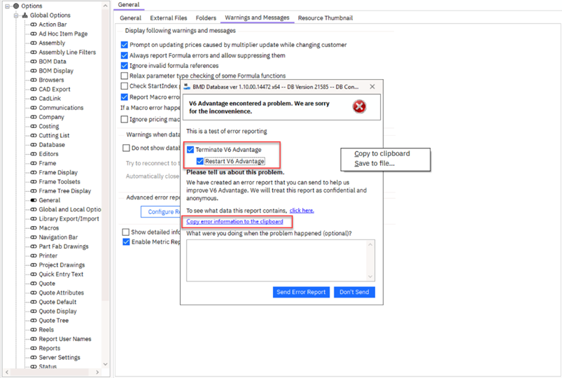 Error Reporting Framework Update and Enhanced Usability Requirement: As a user, I want a simplified and consistent error reporting experience with the ability to easily share error details, so that I can efficiently document and communicate issues without managing additional configuration settings.