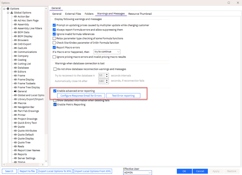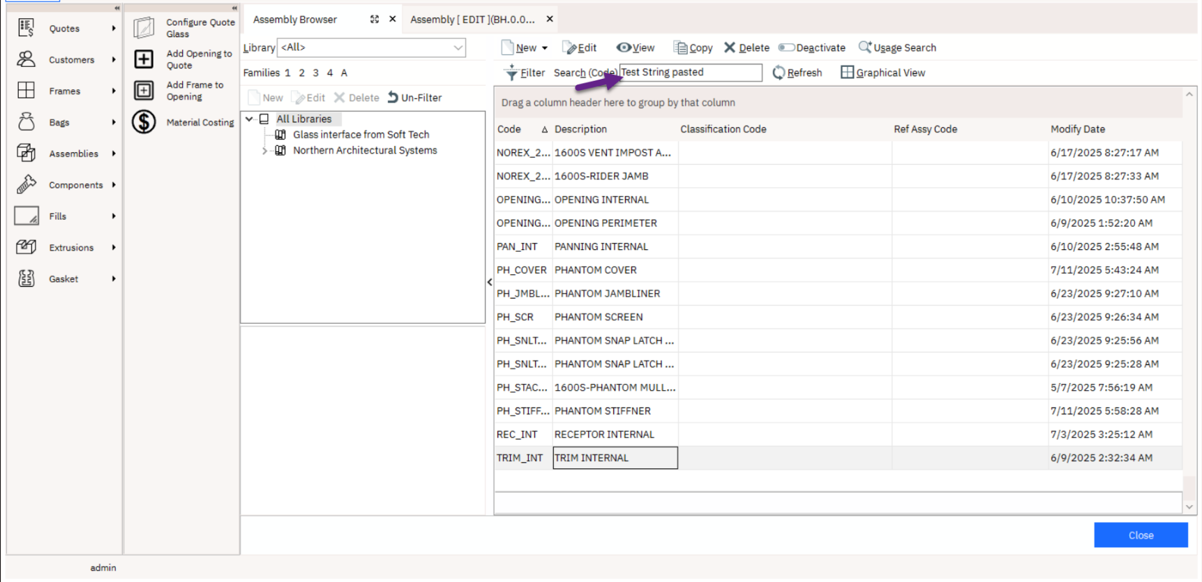 Custom Gasket Finish Colour IDs Now Persisted and Remapped Correctly Symptom: A gasket on an assembly allows the operator to choose a finish colour (Fincol1, Fincol2, etc.) or select a Custom finish colour from the colour list. This incorrect mapping caused validation errors when attempting to add a frame to a quote. As a result, users could not proceed with quoting operations due to mismatched or missing Gasket Finish Colour references after the library import. Resolution: V6 will now store both the ID and LIB_ID for Custom-selected gasket colours in the ASSY_HOOK_GASKET table. |