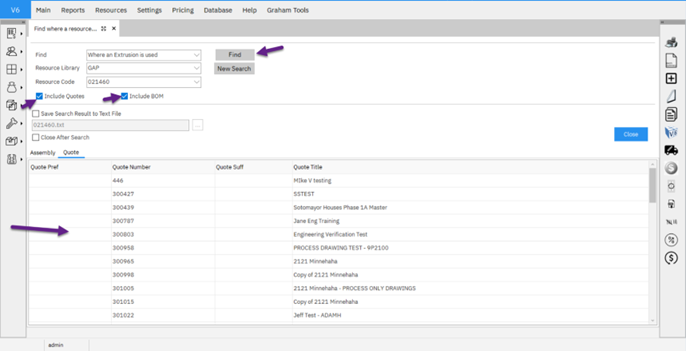 Allow to search resources in quote's BOM Requirement: As a DB developer I would like to use the search resources functionality to search in the quote's BOM as well. This will allow us to identify in which quotes specific resources are used. Implementation: